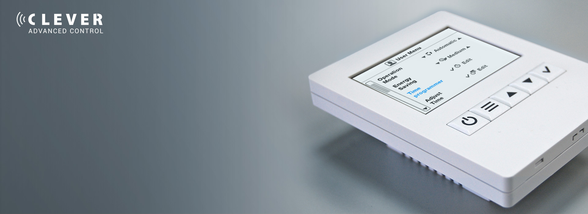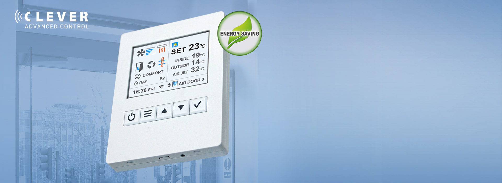 Contrôle multipleCLEVER PCB peut contrôler différents types d’unités : rideaux d’air, chauffage, AHU et d’autres systèmes. Un CLEVER TFT peut gérer jusqu’à 255 unités différentes, chacune ayant son propre programme.