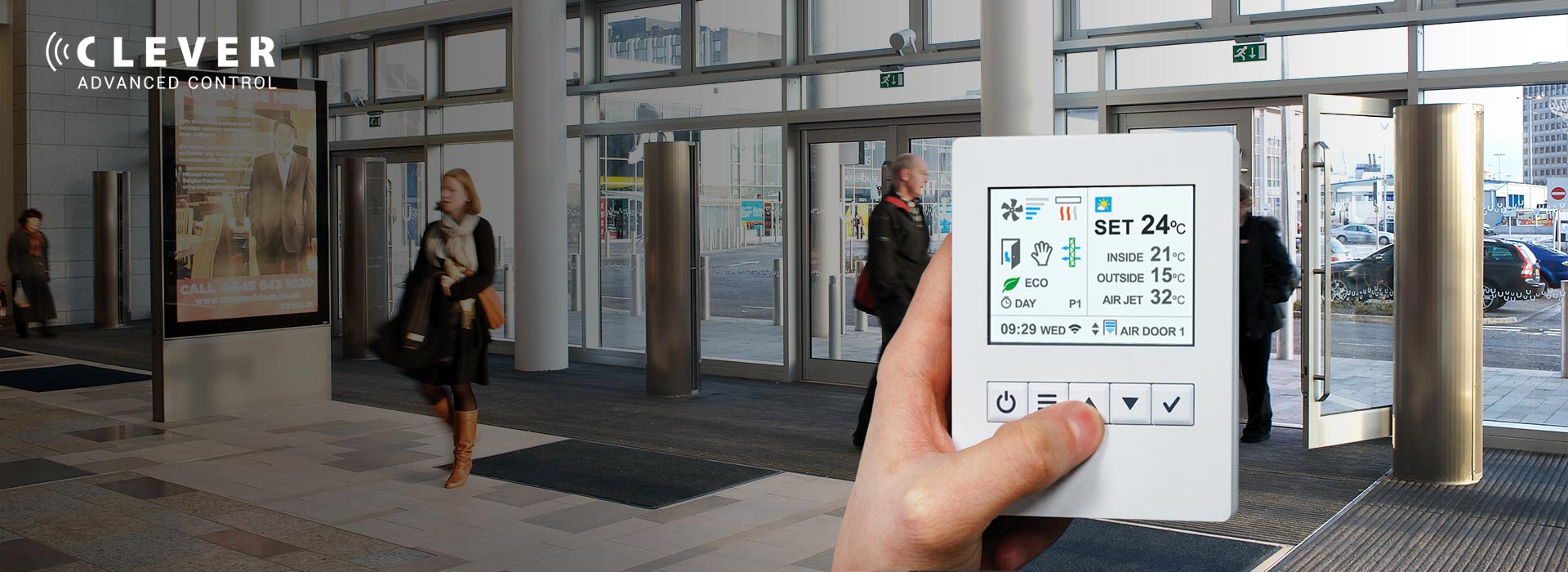 Contrôle multipleCLEVER PCB peut contrôler différents types d’unités : rideaux d’air, chauffage, AHU et d’autres systèmes. Un CLEVER TFT peut gérer jusqu’à 255 unités différentes, chacune ayant son propre programme.